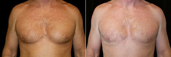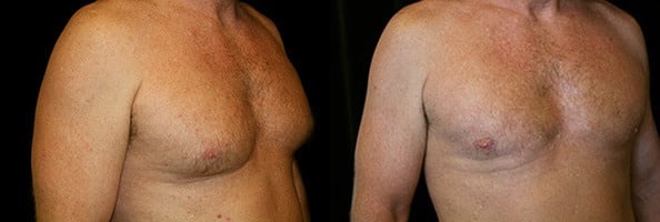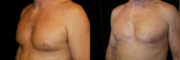 Seattle, Washington – This is a 43 year old male who presents with adolescent gynecomastia and treated with gland excision and suction assisted lipectomy at the Novato, California office. His goal is to be less self-conscious about his chest and to obtain a more masculine looking chest. He is 6 feet tall and weighs 200 pounds. He underwent gynecomastia surgery at Marin Cosmetic Surgery Center. He had 30 grams of breast tissue removed from his right chest and 40 grams of breast tissue removed from his left chest. He also had 450 cc. of fat and aspirate removed from his left chest and 500 cc. of fat and aspirate from his right chest. He had an uneventful post op course. His pictures are seen at 2 months after surgery.