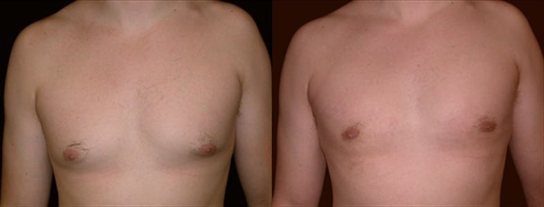 This 27-year-old man is 6’4″ and 195lbs. He suffers from adolescent gynecomastia with breast sensitivity and tenderness. He underwent glandular excision and suction-assisted lipectomy of the chest. His primary goal was “to remove glandular tissue.