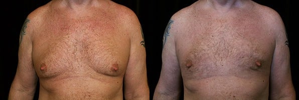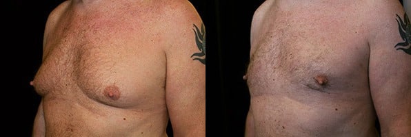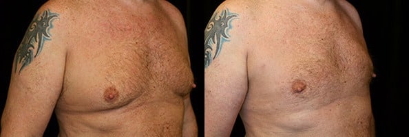San Francisco, California – This is a 53 year old male who presents with adolescent gynecomastia that has been complicated by taking steroids for muscular growth. His goal is to be able to take off his shirt in public and to be comfortable. He is 6 feet 3 inches, 220 pounds. He underwent gland excision and suction assisted lipectomy of his chest as well as his axilla or armpit. His surgery was performed at Marin Cosmetic Surgery Center in Marin County, California. He had 70 grams of breast tissue removed from his right chest and 46 grams of breast tissue removed from his left chest. He had 650 cc. of fat removed from both the right and left armpit region as well as 850 cc. removed from both the right and left chest. His post operative course was uneventful and his photographs were taken 3 months after surgery.