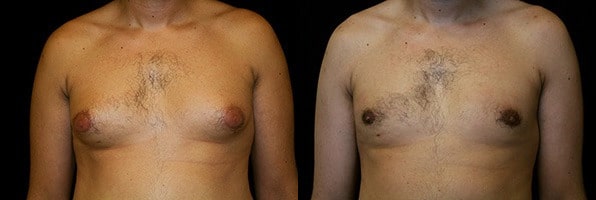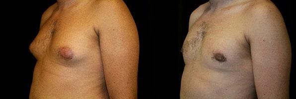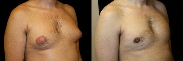 Yuba City, California – This is a 28 year old male who presents with steroid induced gynecomastia and presents to the San Francisco office for gland excision and suction assisted lipectomy. He had steroid use three or four years ago in which he has had various cycles since about 2005. His weight increased from 170 to about 212 pounds. His goal is to have his chest more flat. He is 5 feet 11 inches tall and weighs 212 pounds. His surgery was performed at Marin Cosmetic Surgery Center in Novato, California. He had 78 grams of breast tissue removed from his right chest and 52 grams of breast tissue removed from his left chest. In addition he had 550 cc. of fat and aspirate removed from his right chest and 600 cc. of fat and aspirate removed from his left chest. His post op course was uncomplicated except for a few steroid shots for scarring. His photographs are seen approximately 9 months after surgery.