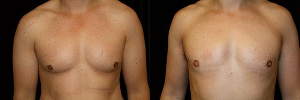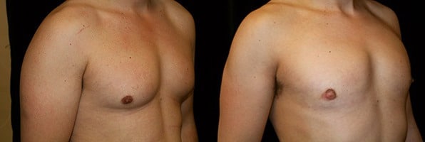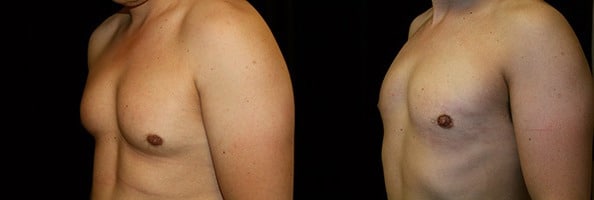 San Francisco, California – This is a 28 year old male who presents to the San Francisco office for evaluation of adolescent gynecomastia. He is 5 feet, 170 pounds. His goal is to have a flatter more contoured chest. He underwent gland excision and liposuction at Marin Cosmetic Surgery Center in Novato, California. He had approximately 200 cc. of fat removed from each side of his chest. He had an uneventful post operative period. He had some steroid shots post operatively due to some deep firmness. His photographs are taken approximately three months after surgery.