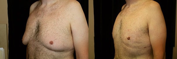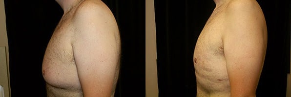 San Francisco, California – This is a 30 year old male who presents after massive weight loss, going from 316 pounds down to 230 pounds. Even though his chest has reduced in size due to the loss of fat content, he still has fullness in both sides of his chest; his right greater than his left and has laxity of his skin. He does not take off his shirt in public due to embarrassment and he wants to feel secure enough to be with the opposite sex as well as doing simple things such as going to the beach or pool. He is 6 feet 2 inches, 226 pounds. He underwent gland excision and suction assisted lipectomy as well as a superior crescent lift to lift the nipple-areola complex to try and remove the lower fold primarily on the right, which is greater than the left. He underwent his surgery at Marin Cosmetic Surgery Center in Novato, California. He had 179 grams of breast tissue removed from his right chest and 84 grams of tissue removed from his left chest. In addition to this he had liposuction of the axilla as well, due to the fullness around the armpit region. He had approximately 1200 cc. of fat removed from each armpit area, in addition to 650 cc. aspirated from his right chest, and 550 cc. of fat extracted from his left chest. He had an uneventful post operative course. His pictures are seen approximately two months after surgery.