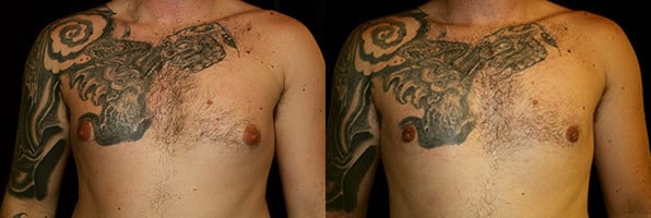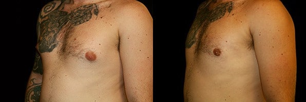 Davis, California – This is a 24 year old male who presents to the Marin County, California office for gland excision and suction assisted lipectomy of his chest. He has had male breasts since about 12 years old, thus adolescent gynecomastia. This may have been complicated by heavy marijuana use. He does take off his shirt at the beach and swimming pools but is very uncomfortable doing so. His goal is to decrease the puffiness of his nipples. He underwent a gland excision and suction assisted lipectomy of the chest at Marin Cosmetic Surgery Center in Marin County, California. He had 44 grams of tissue removed from his right side and 30 grams of tissue removed from his left. His photographs are seen about six weeks after surgery.