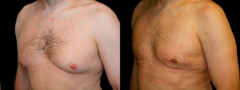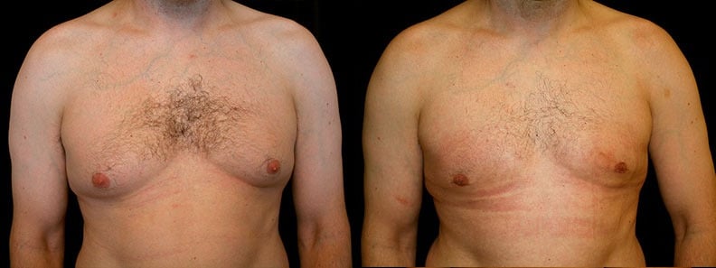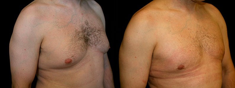 This is a 44-year-old male from Stateline, Nevada, who presents for evaluation of gynecomastia. He underwent gland excision and liposuction of his chest. He had approximately 350 cc of fat and aspirate removed from each side in addition to 16 grams of tissue removed from his right chest and 18 grams removed from his left chest. His photographs are seen approximately two months after surgery.