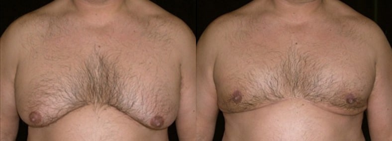This 48-year-old man is 6′ and 235lbs. He has had gynecomastia since adolescence and prior to surgery would never expose his bare chest in public. He underwent glandular excision of the chest, supplemented with axillary liposuction. The possible need for a secondary lift was discussed during consultation. The left side requires a peri-areola lift for skin excision and elevation of the nipple areola complex.
