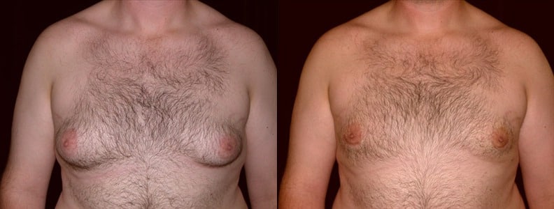 This 29-year-old man is 6’4″ and 275lbs. He has never been able to expose his chest without feeling uncomfortable. He underwent glandular excision and suction-assisted lipectomy of the chest and axillae, from which I extracted a total of 2250cc bilaterally. His goal was “to wear a T-shirt and possibly take off my shirt.