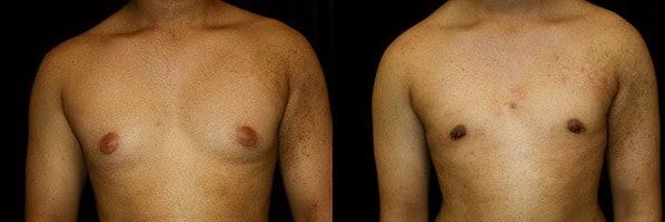 Livingston, California – This is a 28 year old male who presents to the San Francisco office for evaluation for adolescent gynecomastia. His male breast developed at the age of 13 years old in spite of being quite lean and very fit. He feels very uncomfortable with the appearance of his chest and presents for gland excision and liposuction. He underwent gynecomastia breast reduction surgery at Marin Cosmetic Surgery Center in Marin County, California. He had 41 grams of tissue removed from his right side and 37 grams removed from his left side. He had an uneventful post operative course and his photographs are seen at five weeks after surgery.