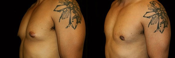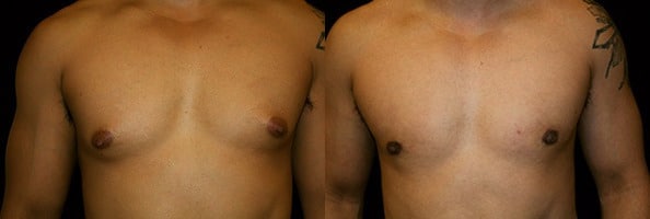 San Jose, California – This is a 30 year old man with adolescent gynecomastia and presents to the San Francisco office for male breast reduction treatment. His goal is to get rid of his puffy nipples. He underwent gland excision and liposuction at Marin Cosmetic Surgery Center in Marin County, California. We removed 27 grams of breast tissue from the right chest and 21 grams of tissue from the left. He had an uneventful post op course and his pictures are seen four weeks after surgery.