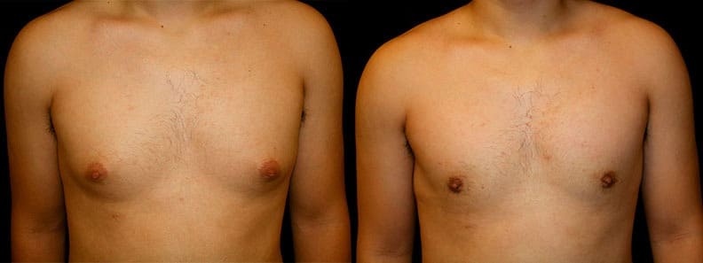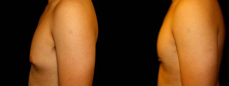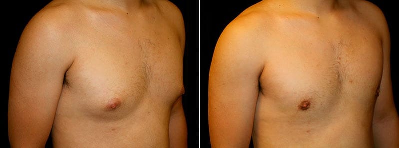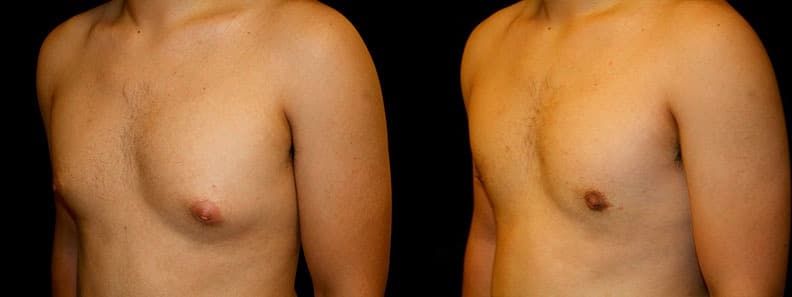This is a 23-year-old male from Oakland, California, who presents with adolescent gynecomastia at the San Francisco office location. He underwent gland excision and suction-assisted lipectomy in Novato, California, at the Marin Cosmetic Surgery Center. He had 35 grams of tissue removed from his right chest and 42 grams of tissue removed from his left side. His goal was to achieve “confidence”. His photographs are seen five months after surgery.