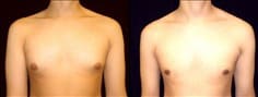HISTORY: This is an 18-year-old resident of Seattle, Washington who presents to the San Francisco office for gland excision and chest liposuction. He has had enlarged chest size since about 12 years old. He has suffered significant psychological issues. He does not take off his shirt in public and his goal to have a “flatter chest and to able to do more things and not be self-conscious”. He underwent gland excision and chest liposuction with extraction of about 275 cc of fat from each side. There were a total of 25 grams of tissue removed from his right breast and 21 grams of tissue removed from his left breast. His procedure was performed at Marin Cosmetic Surgery Center in Marin County, California. His photographs were taken approximately 3 months after surgery.