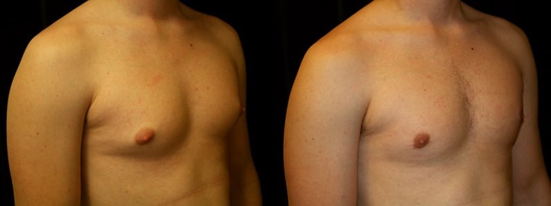 This is a male in his mid-20’s who presents with adolescent gynecomastia and presents to the San Francisco office for evaluation for gynecomastia. He underwent gland excision and suction-assisted lipectomy. His postoperative photographs are seen approximately three months after surgery