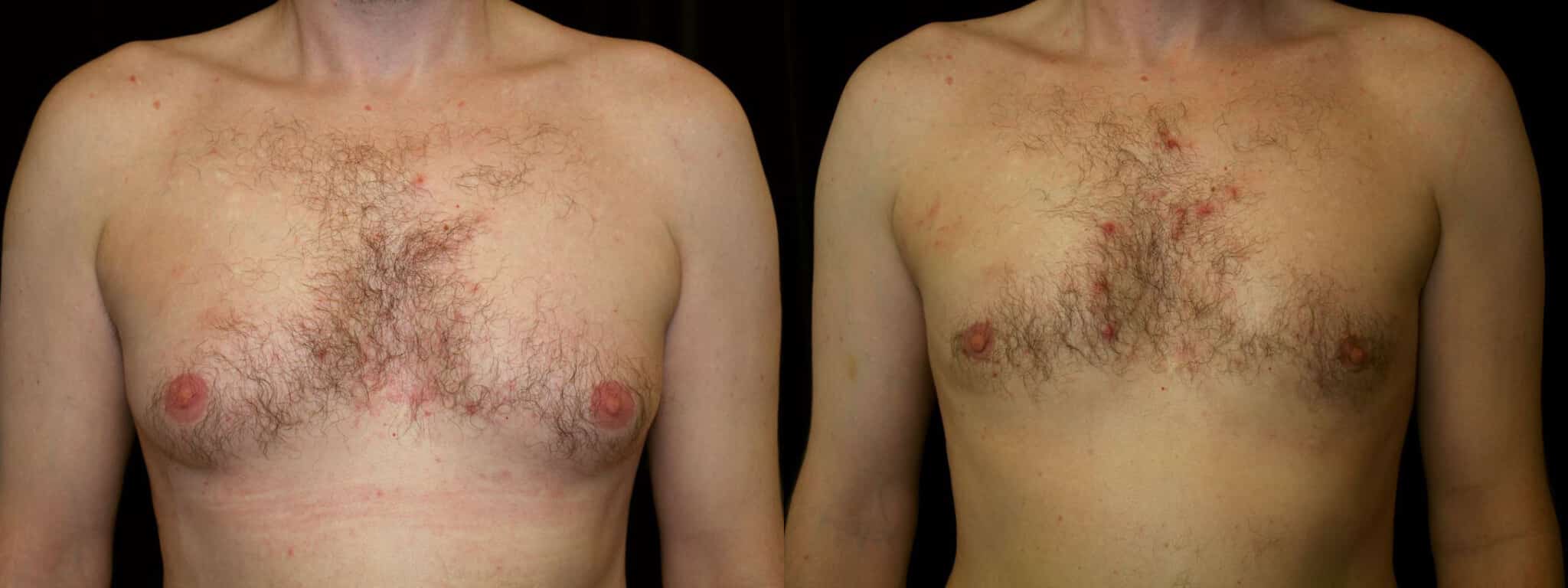 This is a 22 y.o. male 5’8″ and 154 lb who underwent male breast reduction surgery for adolescent gynecomastia. He is seen 2 months after surgery.