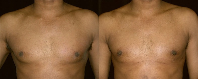 This 29-year-old man is 5’11” and 175 pounds. He has dealt with gynecomastia since puberty, suffering from a great deal of embarrassment over the years. Prior to surgery, he would never take off his shirt in public. His primary goal for surgery was to achieve a “flatter chest with less nipple protrusion”.