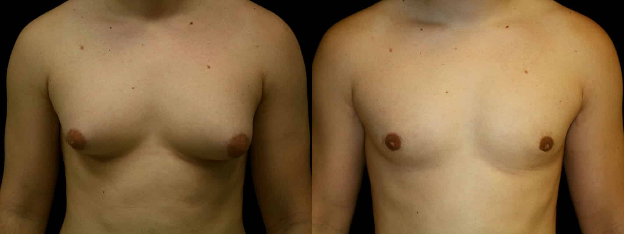This is a 22 y.o. male 5’9″ and 175 lb who underwent male breast reduction surgery for adolescent gynecomastia. He is seen 2 months after surgery.