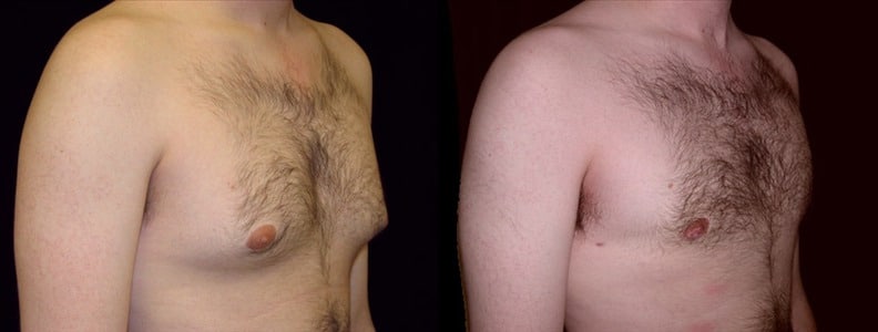 This 22-year-old man is 6′ and160lbs, suffering from adolescent gynecomastia. Prior to surgery, he was never able to comfortably expose his chest due to extreme embarrassment. He underwent glandular excision and suction-assisted lipectomy. His goal was “to have a normal-looking chest.