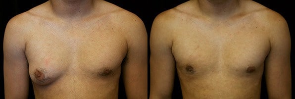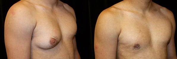 Gilroy, California – This is a 22 year old resident of Gilroy, California who presents to the San Francisco office for unilateral right gynecomastia. He has had this condition since adolescence. He presents to Dr Delgado’s San Francisco office for evaluation and surgical treatment. His primary goal is to have a flat chest. He has had some hormone testing in the past which has been normal. He has a history of smoking marijuana but this has not changed the appearance of the chest. He underwent a right unilateral gland excision with suction assisted lipectomy with excision of 13 X 7 X 5 cm. segment of tissue. He had an uneventful recovery and has photographs seen at about four weeks after surgery
