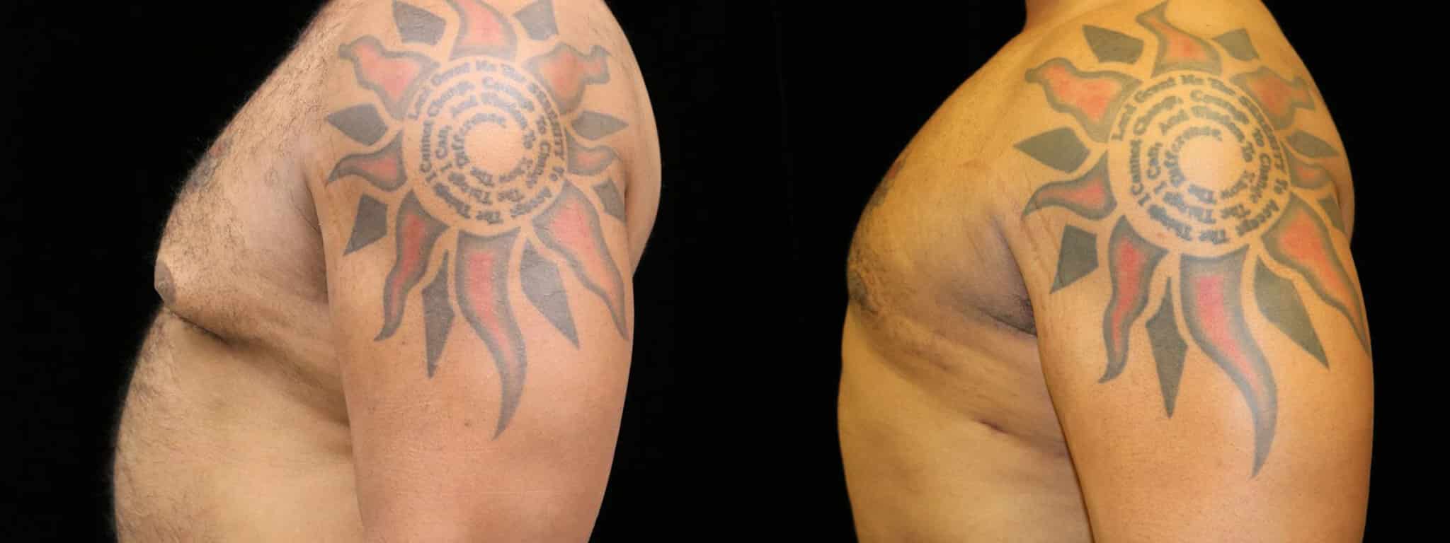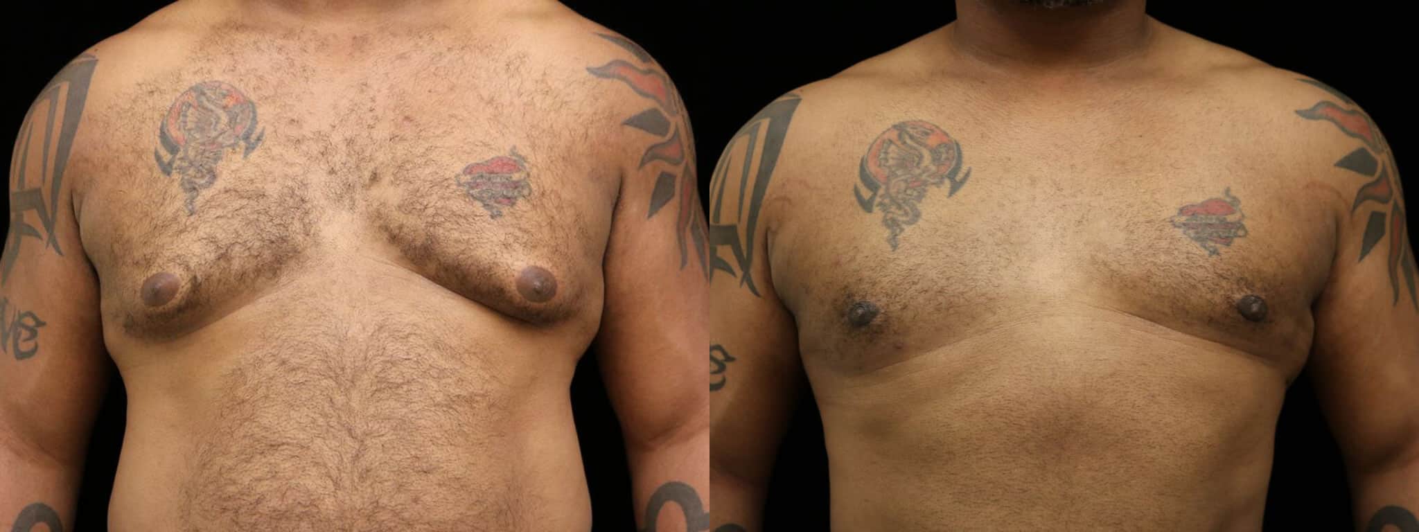 This is a 33 y.o. male 5′ 11″ and 196 lb who underwent male breast reduction surgery for adult gynecomastia. He is seen 2 months after surgery.