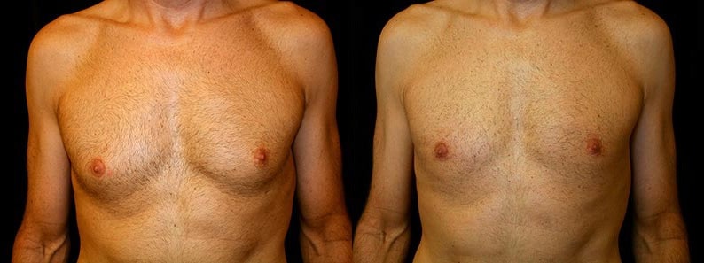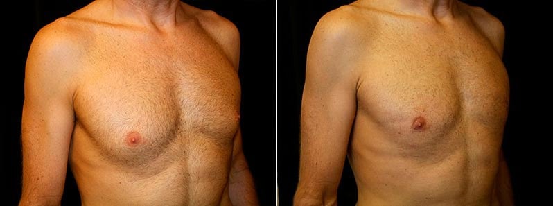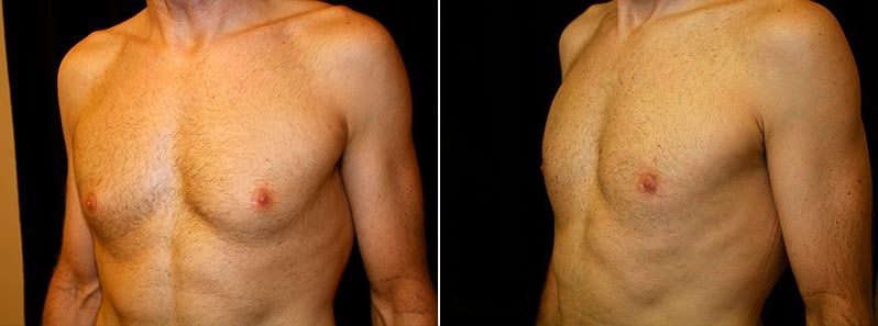 This is a 51-year-old male with adolescent gynecomastia who presents for male breast reduction surgery. He underwent surgery at Marin Cosmetic Surgery Center in Novato, California, for gland excision and suction-assisted lipectomy. He had previous gynecomastia surgery in 2010 where he had liposuction only. His goal is to obtain a flatter contour of his chest. His photographs are seen approximately six weeks after surgery.