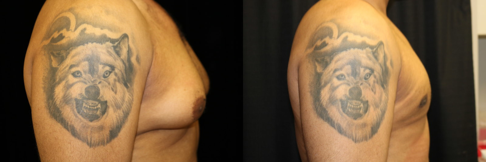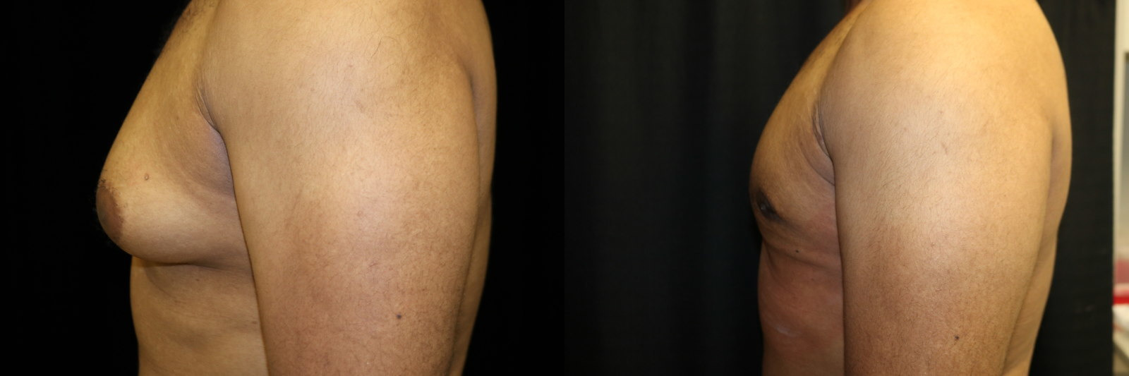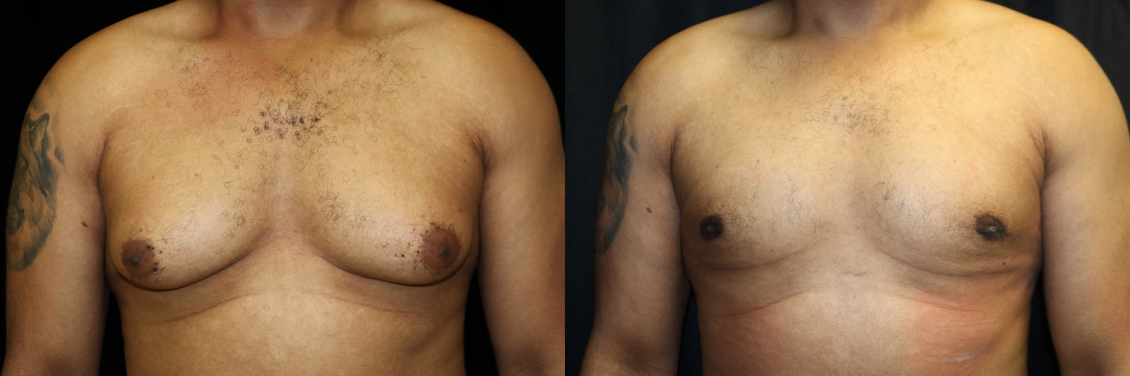 This is a 27 year old male 6’1″ 205 pounds who underwent male breast reduction surgery for stage 3 gynecomastia. He is seen 3 months after surgery.