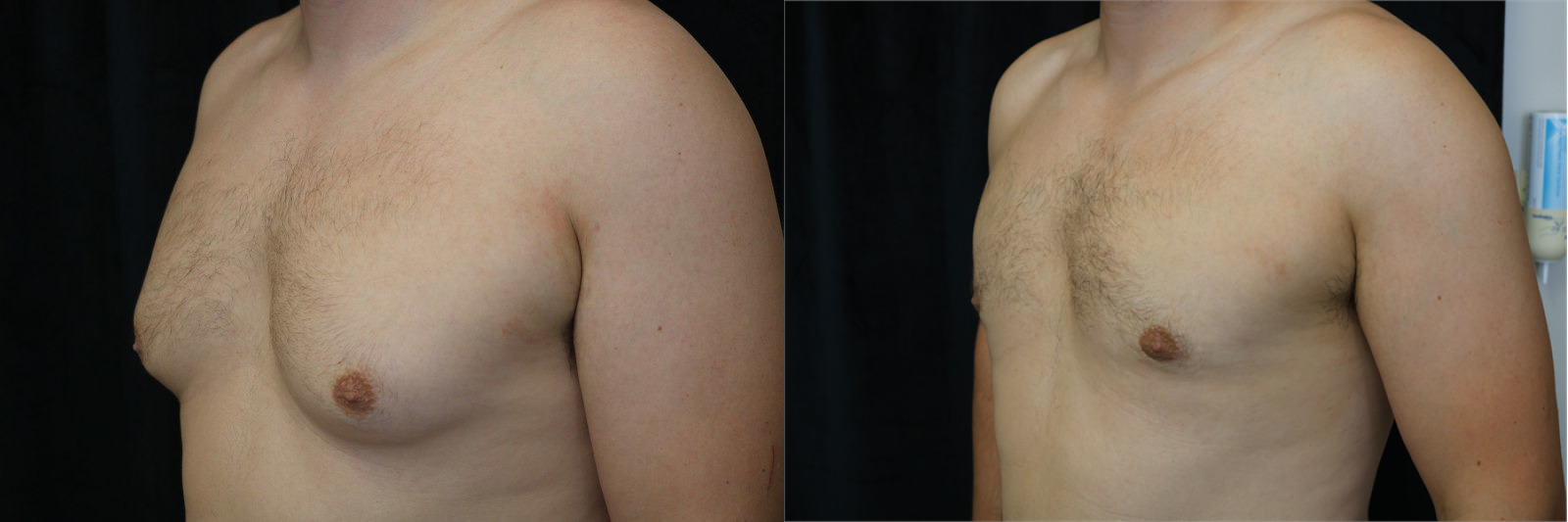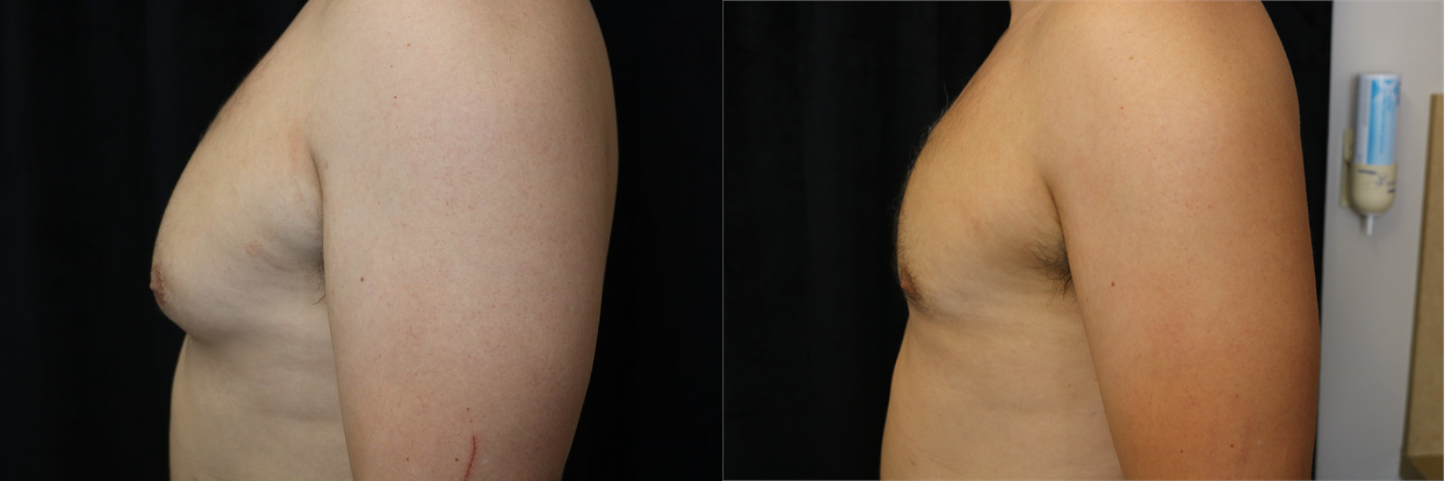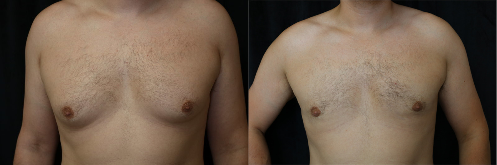 34 year old male who underwent male breast reduction surgery for grade 2 gynecomastia. He is seen 3 months after surgery.