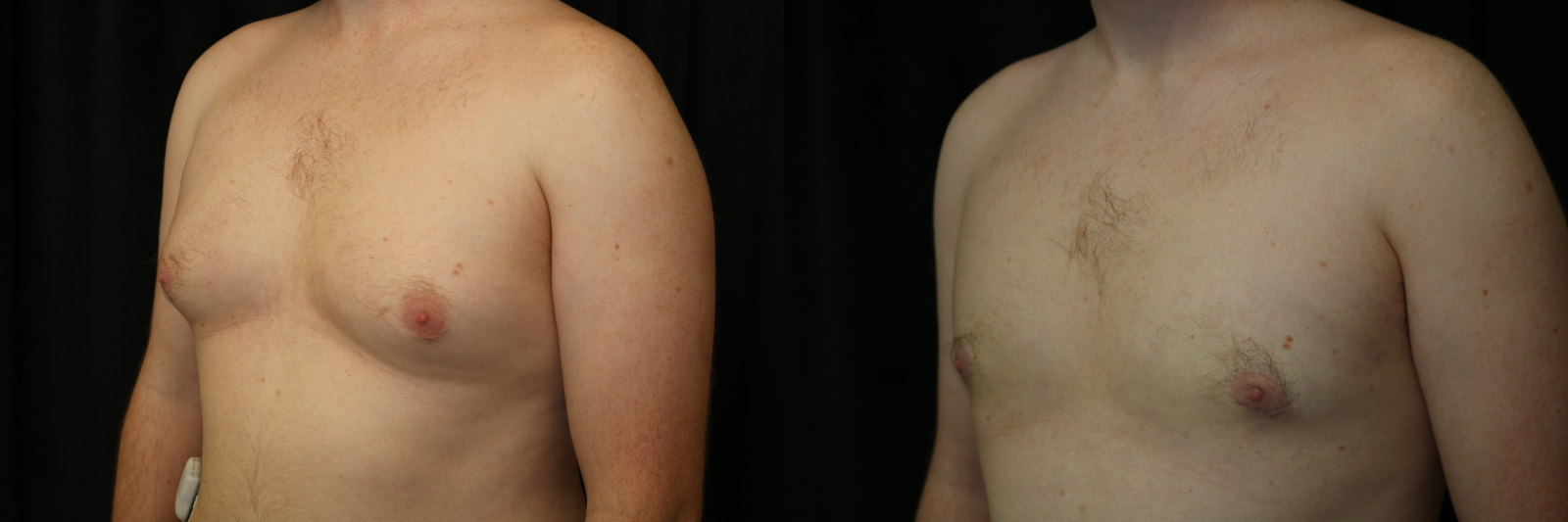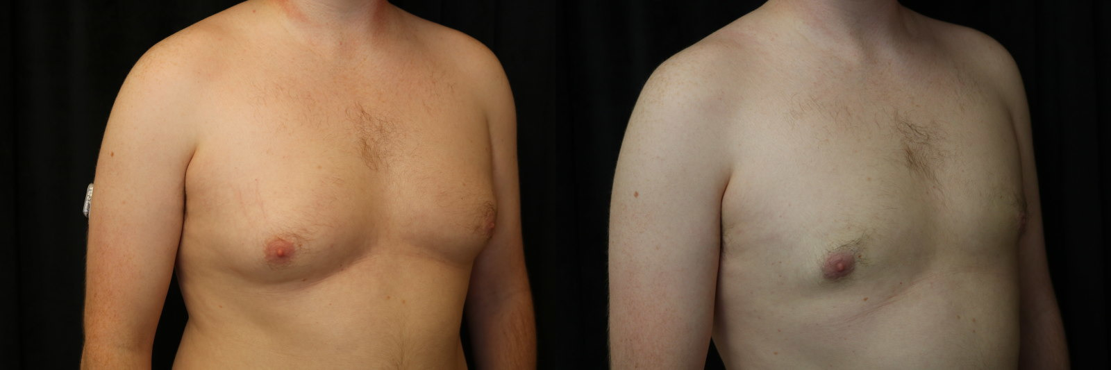 This is a 26 year old male 5’11” 198 pounds who underwent male breast reduction surgery for grade 2 adolescent gynecomastia. He is seen 3 months after surgery.