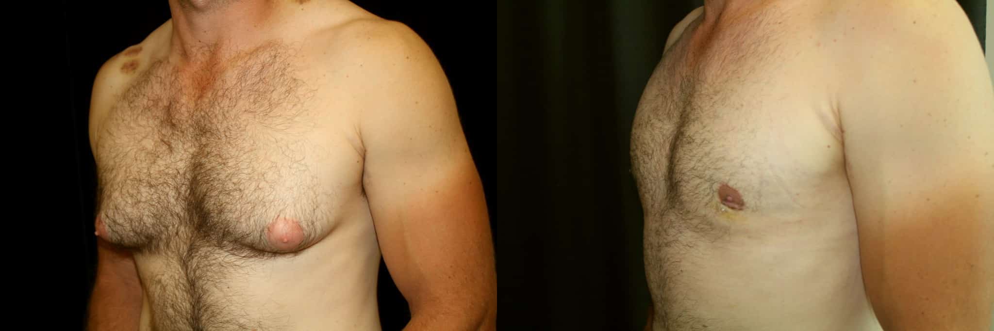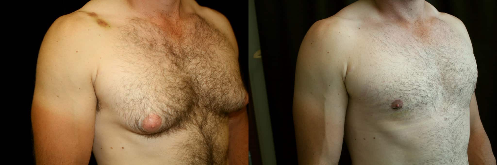 Gland excision is usually performed as an outpatient procedure under general anesthesia. During your surgery, you will be sitting at an 80-degree angle to mimic how your chest will look when you are standing, which is generally how you will be observed by yourself and others. For 75-80% of cases, an incision is made at the bottom half of the areola, but this incision may have to be extended around the nipple, to the bottom of the breast fold, and/or toward the armpit area for more severe cases. The skin is elevated from the underlying glandular tissue and fibro-fatty tissue layer. Specialized scissors are used to remove the enlarged male breasts and sculpt the remaining fibro-fatty tissue. Dr. Delgado is aggressive during this stage since removing more of the glandular tissue lessens the chance of gynecomastia returning, but he is also careful to make your chest contour as perfect as possible.