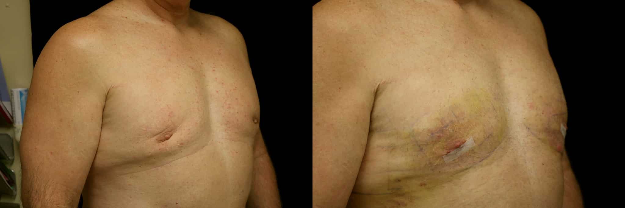 Gynecomastia revision surgery corrects an initial gynecomastia surgery that was either ineffective or did not heal properly. One of the main reasons people receive gynecomastia revision surgery is because their first gynecomastia procedure was too conservative. Patients seeking revision may have only received liposuction but not a breast gland excision. Since liposuction only removes fatty tissue, this technique alone is not effective to treat the root causes of gynecomastia. If a male breast reduction was performed with a breast gland excision but the patient still has full breasts, it is likely the surgeon did not remove enough excess breast tissue.