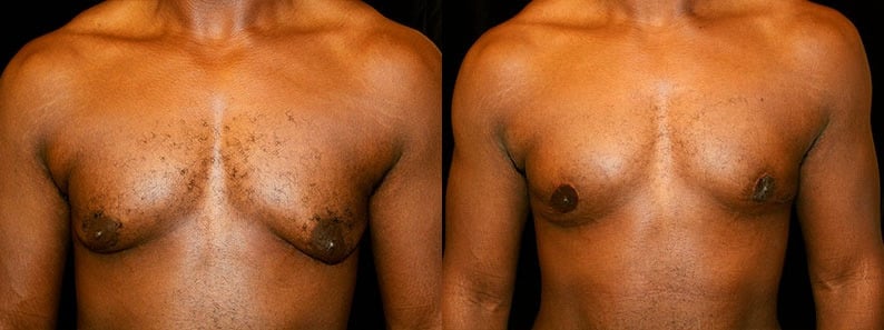 The two-stage procedure was designed for patients with severe cases of gynecomastia which is usually a combination of large, puffy nipples and significantly enlarged male breasts. Dr. Delgado can assess your condition to determine which treatment option is best for you at your initial consultation. If a less complex surgical method can be used for your male breast reduction surgery, he will always choose the more conservative method.